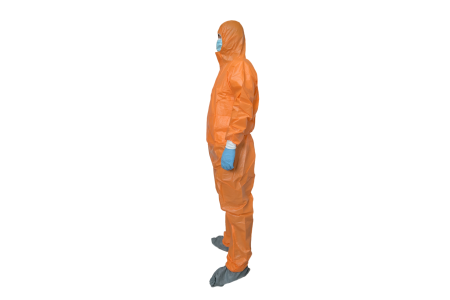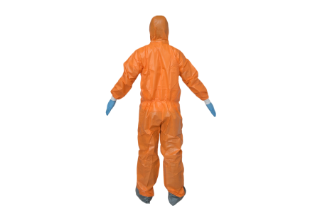 This orange microporous disposable coverall has a micro-perforated or porous surface to allow air and liquids to pass through but not contaminants. The micro perforation allows the wearer to breathe while staying sufficiently tight fitting to prevent contaminates from entering the body. The microporous coverall is ideal for applications where there are high levels of particulate or vapors present.